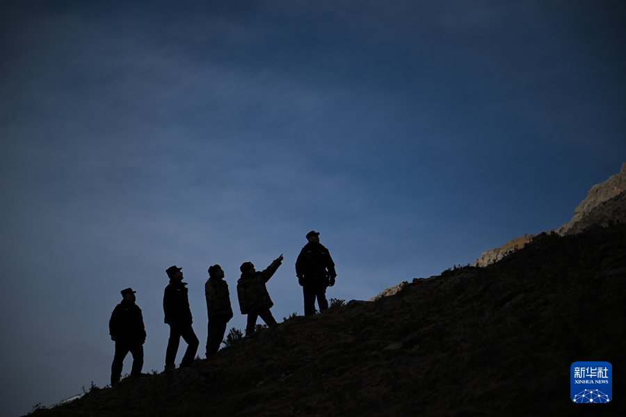 1月8日,在青海省海北藏族自治州门源回族自治县境内的老虎沟,民警和生态管护员在巡护祁连山。新华社记者 齐芷玥 摄