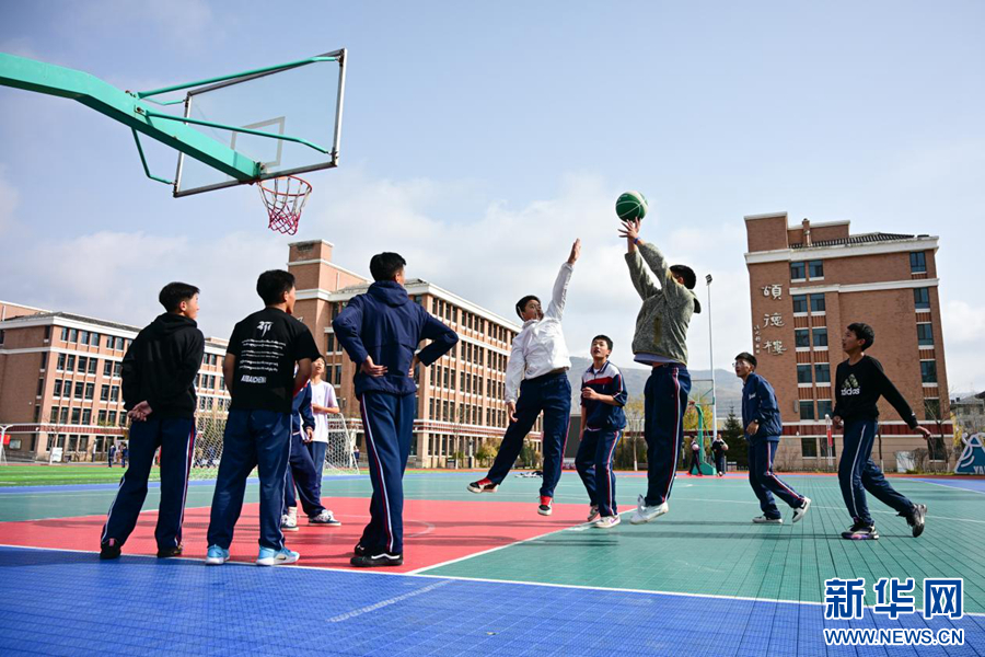 2025年11月7日,在青海省西宁市果洛西宁民族中学,学生在打篮球。新华社记者 齐芷玥 摄