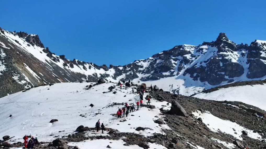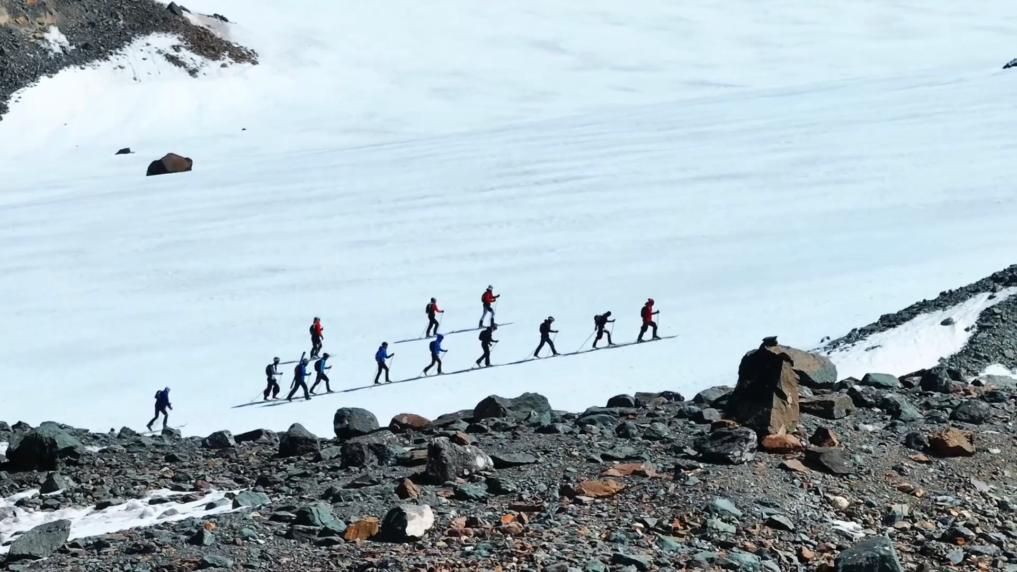 岗什卡雪峰景区除了给游客提供丰富的大众冰雪体验场景,作为国内外登山滑雪爱好者的理想目的地,如今,登山和徒步等体验成为这里的“主流”。